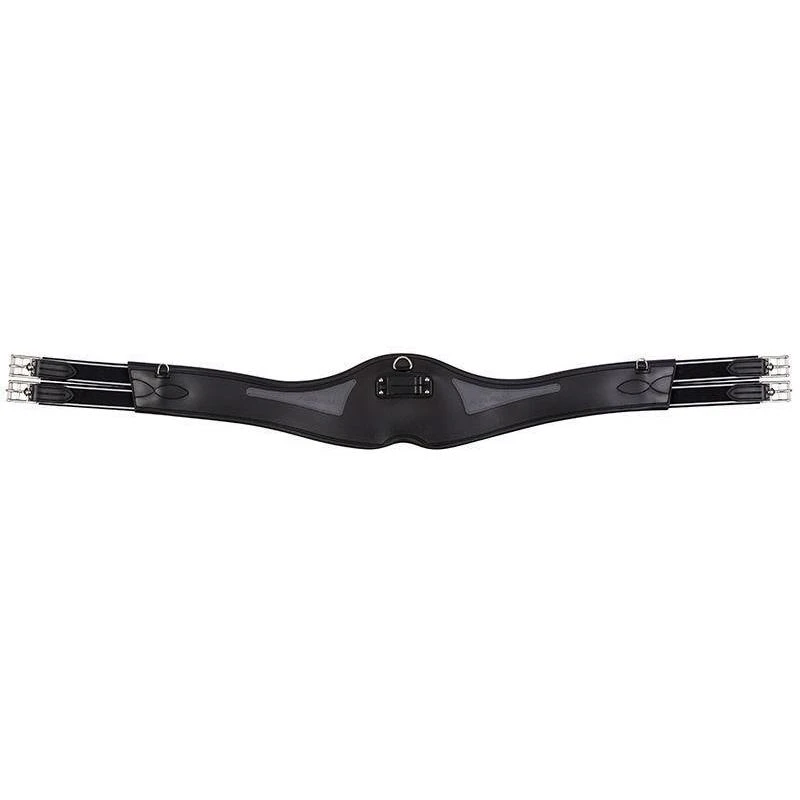 A more streamline version of the Stud Girth contoured to fit round the elbow and maximise freedom of movement. This comfort girth is made from composite material & soft eco leather. Eliminates pinching & relieves pressure on the abdomen enabling a tight close fitting girth without discomfort. A sophisticated airflow pattern is created by the individual shock absorbing gel pad elements. This improves flexion, breathability and reduces sweat build up. A patented Acavallo® safety fastening hook is designed to eliminate need for additional snap hooks for martingales & draw reins creating a smooth safe connection