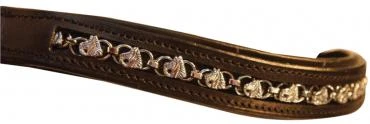 This padded hanovarian noseband leather bridle has a run of silver horseheads on browband and comes complete with web reins