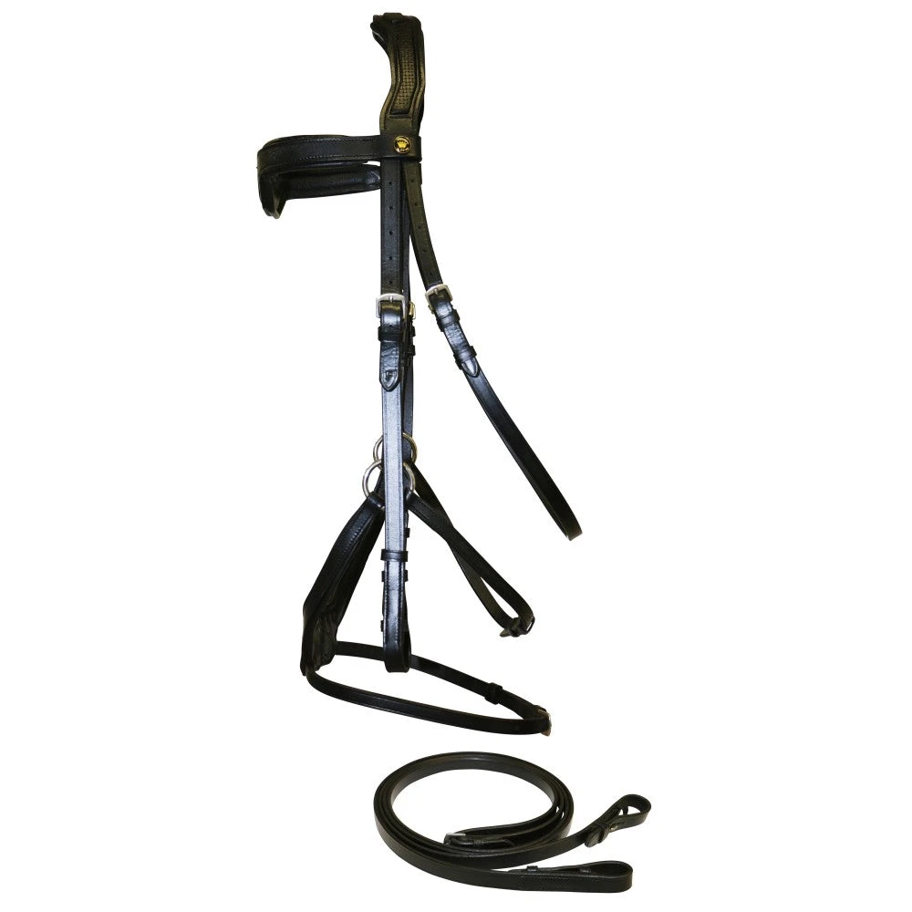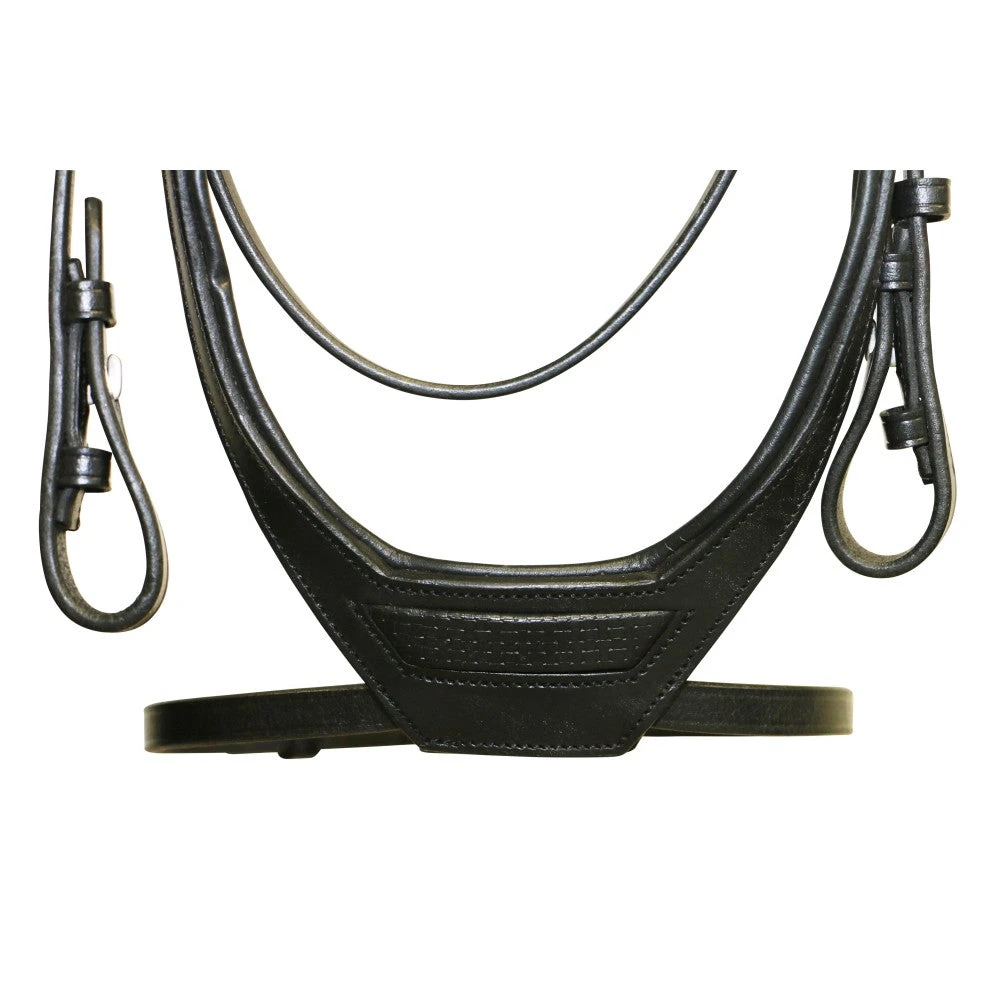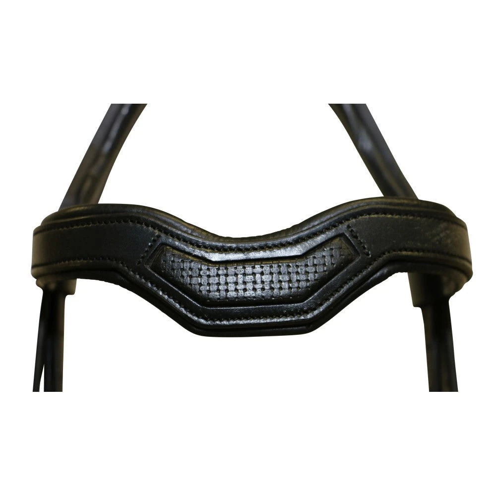 The cheek pieces are shaped to ergnomically fit the horse’s skull and the noseband sits higher than traditional bridles to avoid the pressure and discomfort that can occur with other drop nosebands.