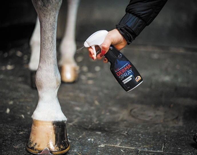 Use the natural cleansing spray Cavalor Derma Spray on the skin, coat, mane, and tail.