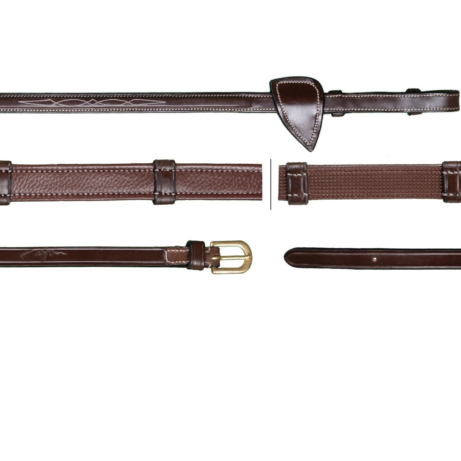 These Hunter Reins feature the fancy cream stitching and brass buckles, with 7 leather loops for extra grip.
