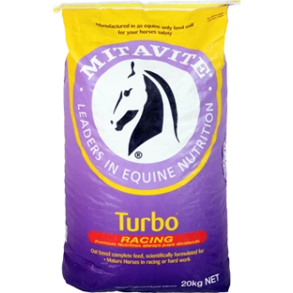 Mitavite® Turbo™ is a hybrid racing feed, combining selected premium graded oats with the technology of steam extrusion and micronization to improve digestibility and maximise energy levels in the horses’ diet. This, combined with the addition of vitamins and minerals, essential amino acids in a horse specific profile and oils rich in Omega 3 & 9 make Turbo™ a serious option for horses in hard work.