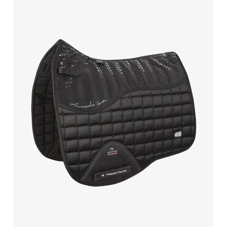 Additional anti-slip protection and anti-rub exist in the form of the 600-denier polyester girth protection panel. A dressage saddle pad for the rider that seeks technical performance and luxe styling from their equipment.