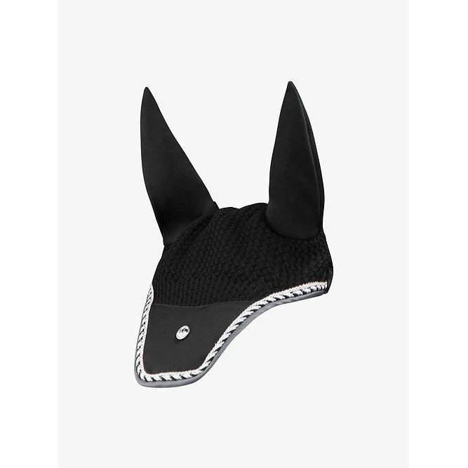 Ear bonnet with elastic ears made of a stretchy, breathable, antimicrobial quick-dry material. The elastic fabric at the ears makes the ear bonnet fit all types of horses and it quickly transports moisture and sweat away during the whole ride. The ear bonnet has a classic, crocheted bottom, double piping, and the lower part of the fly hat is covered with shiny, dirt-repellent material.