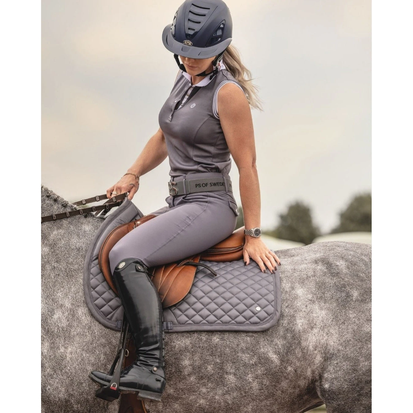 Anatomical jumping saddle pad with a velvet piping and a binding in faux suede. The saddle pad has unique stop cushions for extra comfort – there to keep the saddle pad in place and avoid friction. The inside is covered with an antibacterial quick-dry material that helps to transport away moisture and sweat.