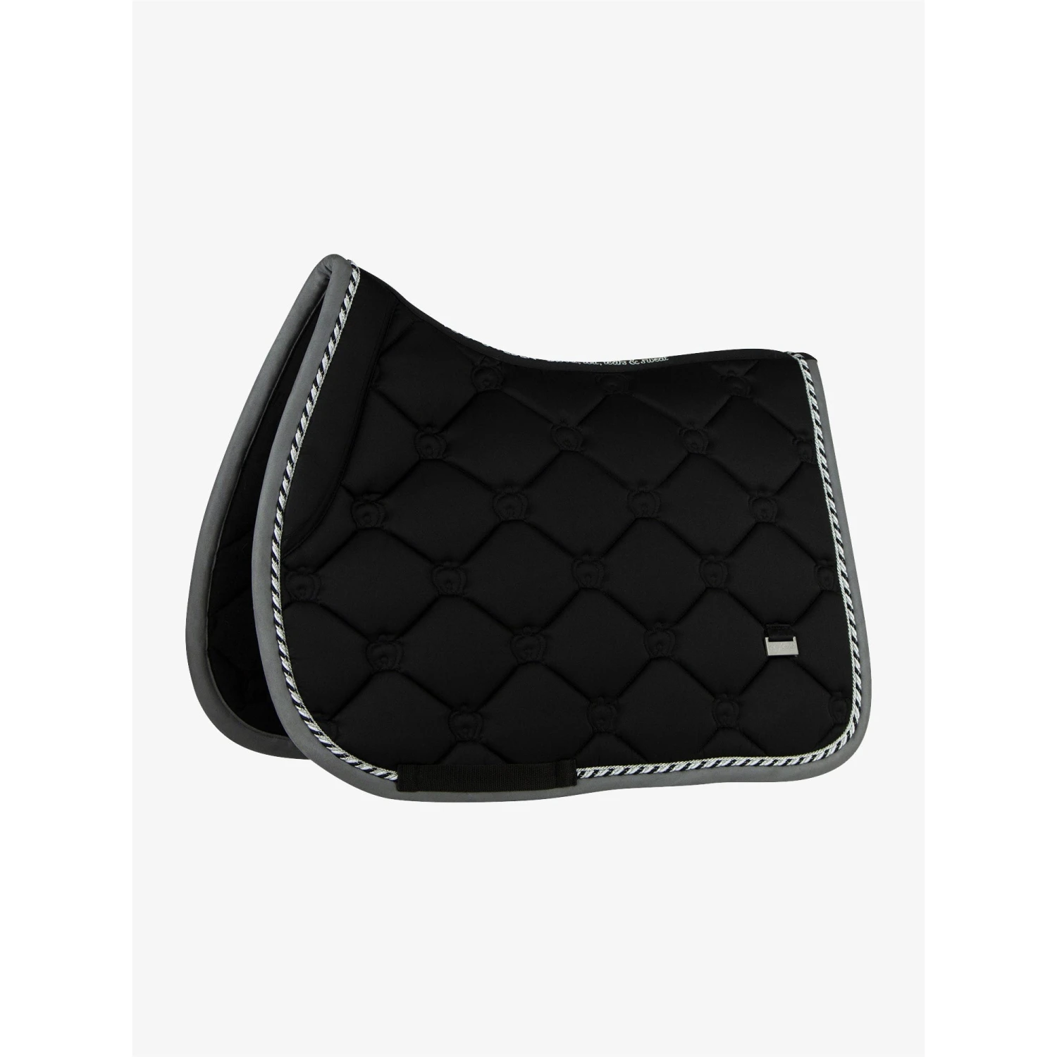 An anatomically designed saddle pad with quilted PS of Sweden monogram. A luxurious saddle pad with details in gold and light cream binding. Unique quote embroidered on the back spine of the saddle pad.