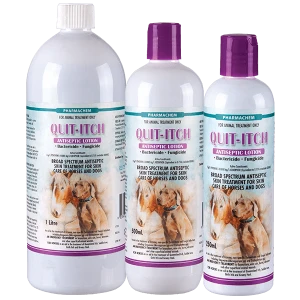Quit-Itch Lotion is an antiseptic skin treatment for broad spectrum skin care of dogs, cats and horses.