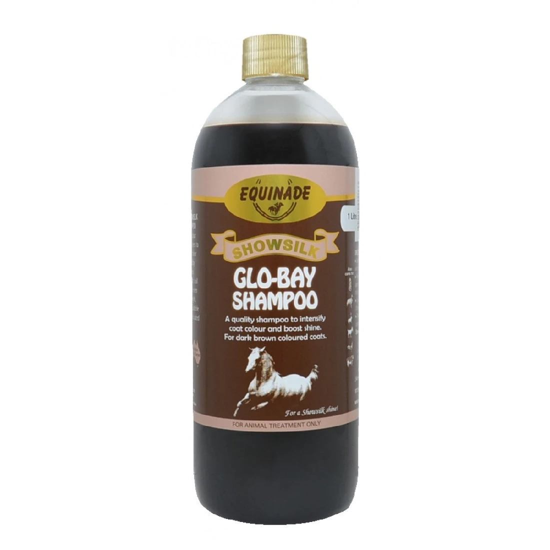 Equinade Showsilk Glo-Bay Shampoo has been pH balanced to be gentle enough to use on many show animals; including horses, dogs, cats, cattle, goats, rabbits, fowl and other birds.