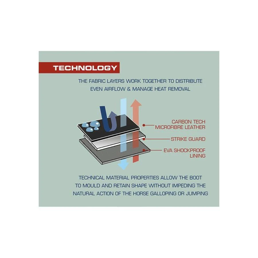Made from lightweight Carbon Tech microfiber leather, they are favoured by racehorse trainers who require superior lightweight protection and also by eventers who prefer to use lighter boots. An ideal horse boot for protection over solid jumping fences.