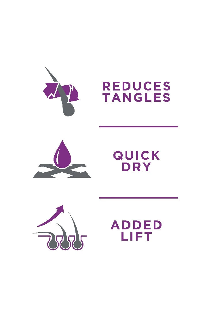 REDUCES TANGLES – QUICK DRY – ADDED LIFT