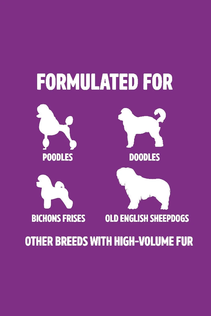 Specially formulated for the thick, curly hair of Poodles, Doodles, Bichons Frises, Old English Sheepdogs and other breeds with high-volume fur.