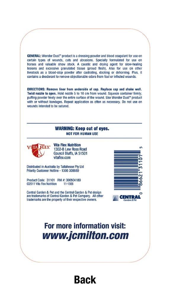 A dressing powder and blood coagulant for use on wounds, cuts, abrasions, and capillary bleeding. Will stop bleeding fast, dry up the wound, and help control granulated tissue formation- a must for any first-aid kit!