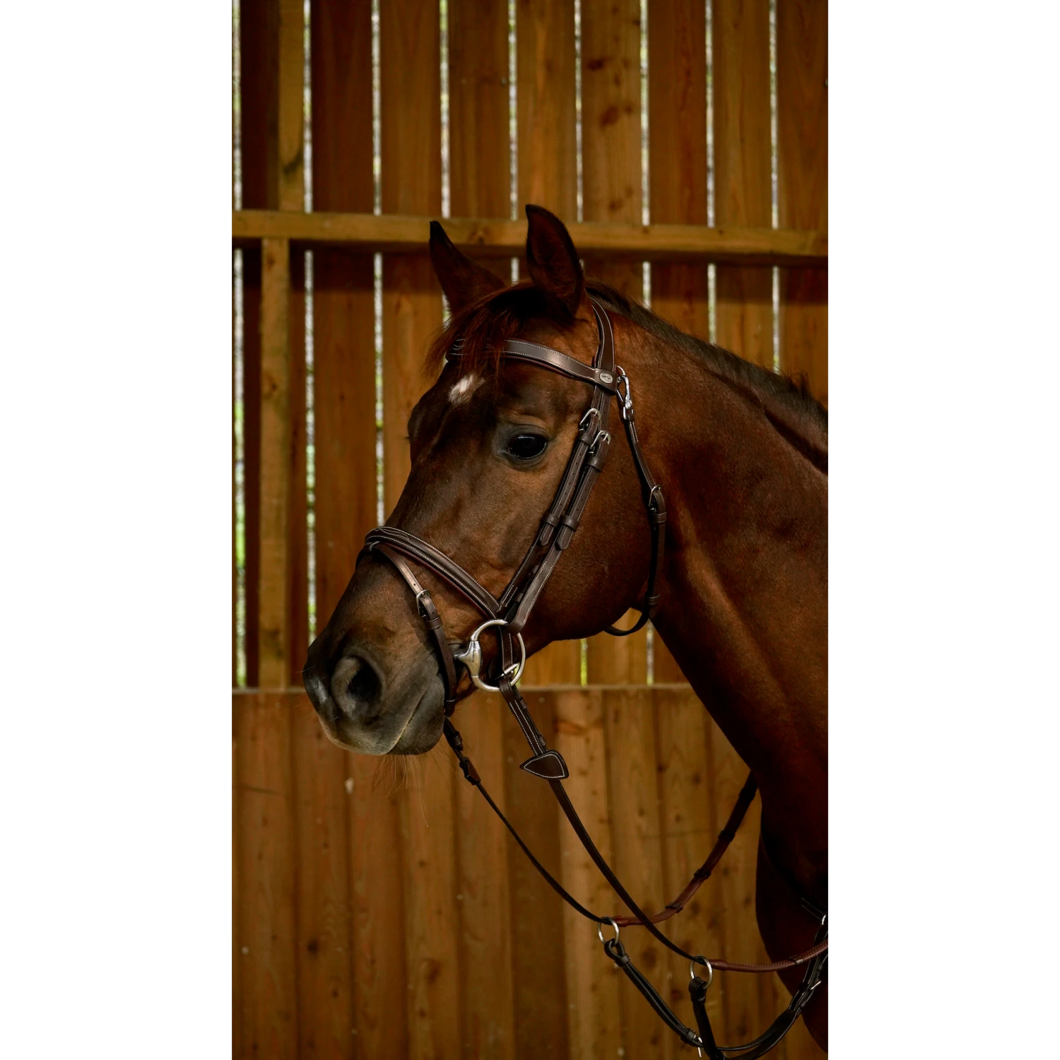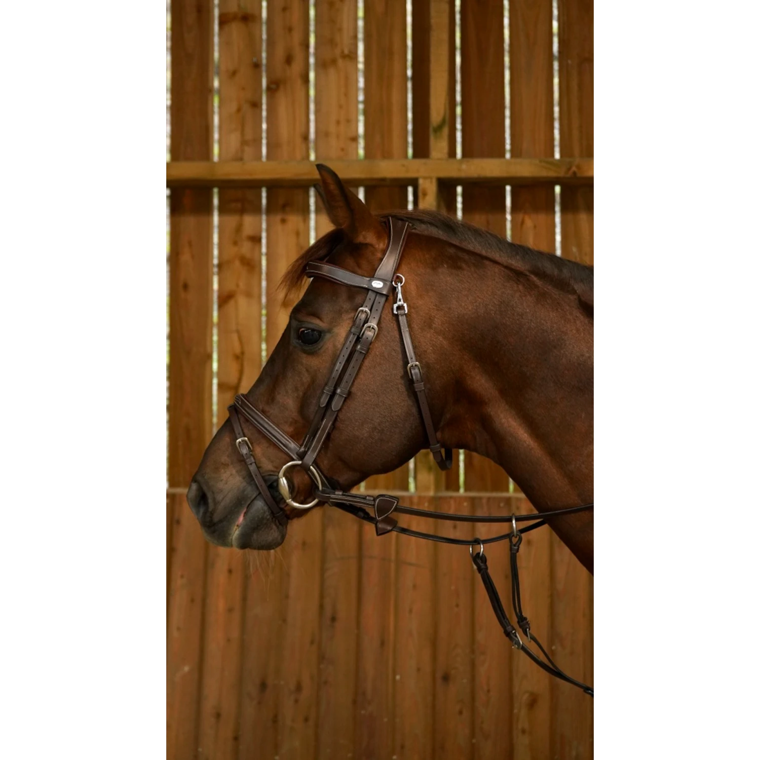 One of the most popular working bridles, the flash noseband bridle comes with a supple broadband with decorative top stitching and throat latch attached by a snap hook.